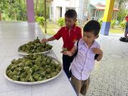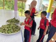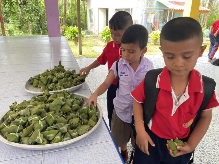 ผู้ใหญ่ใจดีมอบขนมซั้งให้นักเรียน